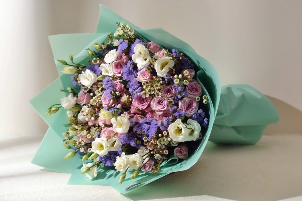 باقة ورد تحتوي على مجموعة من الورود الطبيعيه الهولنديه والكينيه ويتم تغليفها بشكل مميز ومختلف وبجودة عاليه